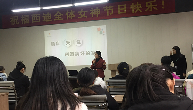 公司還為所有女性同胞準備了一場女性專題講座,特邀請牟陶老師給大家?guī)砑彝ソ逃?、親子關系、兒童心理專題講座分享,在講座上還為女職工準備了精美的節(jié)日禮品。