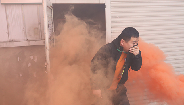 員工手捂口鼻低頭彎腰井然有序逃離火災(zāi)現(xiàn)場(chǎng)