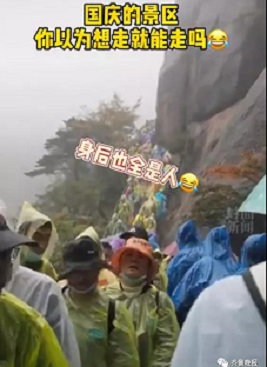 看著這前不見頭后不見尾的長長隊伍。有人直喊“我后悔了,我不想出來玩了,我想回家!”讓人苦笑不得。網友:國慶的景區(qū)你以為想走就能走嗎?