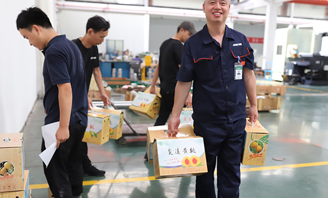 隨著一輛大貨車載入廠區(qū),從炎陵高山采購回來的黃桃迫不及待地想要奔赴到每一位西迪員工手中。在炎炎夏日中給員工送去清涼,將黃桃作為防暑降溫慰問品發(fā)給公司全體員工。盡管外面40度的高溫,領到黃桃的西迪人的內心卻是無比甘甜、無比清涼。